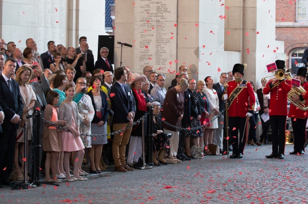 The event in Ypres was attended by many national and international dignitaries, including Queen Mathilde, Flemish minister-president Geert Bourgeois, federal defence minister Steven Vandeput and speaker of the national parliament Siegfried Bracke. It was followed later by the laying of a wreath in the city cemetery on the grave of Pierre Henri Van den Braembussche, founder of the Last Post Association, which organises the nightly ceremony.