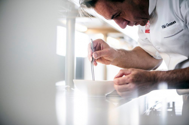 “Chef Viki Geunes has pared down his restaurant to the essentials,” continues the guide. “It all begins and ends with top quality, and that is no different here. Consider, say, a filet of turbot so fresh that it’s simply hard to believe. The meticulous chef manages to further refine that quality with thoughtful details, such as pork knuckle to give it earthiness. He then shows his finesse with a delicious wine sauce. Each plate is complex and outspoken. Exotic garnishes provide surprising sweetness and spiciness. Rest assured: Viki Geunes is a master of his craft.”