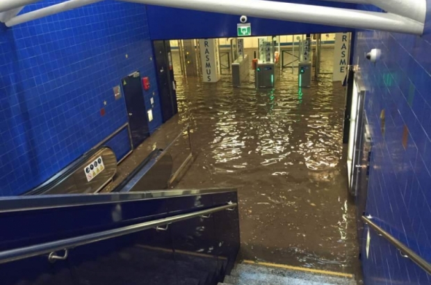 Several Brussels metro stations on Tuesday evening were flooded due to the heavy rainfall, writes Bruzz. A number of photographs quickly appeared on Twitter, showing travellers wading barefoot through the water at Erasmus metro station. In Delta station, the water rose about 10cm high at the entrance tunnel to the station.