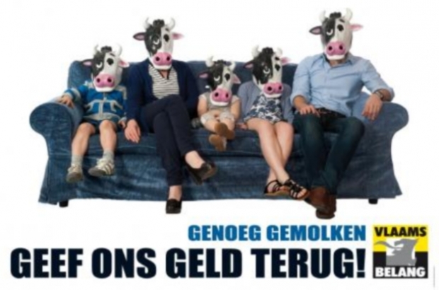 Far-right party Vlaams Belang has borrowed a Thatcher-era slogan to launch its campaign for the 2014 general election. "Give us our money back," proclaims the party, pointing the finger at Belgium’s immigration policy, and the Eurozone crisis and Flemish money being used to help out Wallonia. Vlaams Belang is effectively plagiarising the line ‘What we are asking is for a very large amount of our own money back’, which Margaret Thatcher used during EEC budget negotiations in 1979 and which the tabloid press summed up as "I want my money back". In its programme, the far-right Flemish party wants to dismantle the European Union and the euro, to break up Belgium, to end all immigration and reinstate border controls. It also includes an image depicting Flanders as a ‘cash cow’, in which the members of a "classic Flemish family" have their heads replaced by those of cows, with the slogan “We’ve been milked enough”.