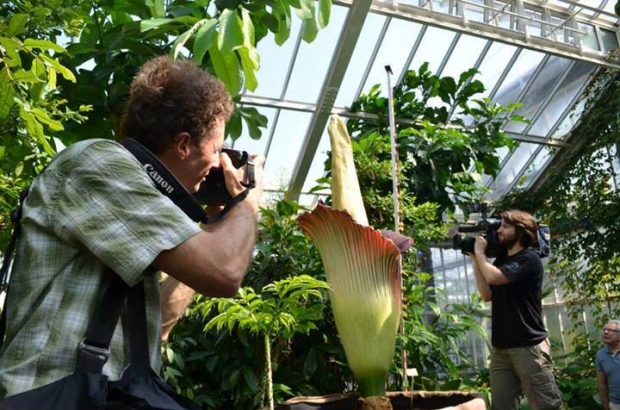 Inside the greenhouse the temperature is over 30°C. "You enter in a very sweaty, warm place with this decomposing body smell," said Van de Vijver, who has to wash his hair after work to remove the plant's odour. "I think you would turn around and go back if you weren't here to see this beautiful flower.” However, the smell is “not because it doesn't like people around," sys Van de Vijver. “It's only there to attract the insects, to say 'the flowers are open, you can come,'”. The perfume is as ephemeral as it is powerful, and it began fading Tuesday night. “As soon as the flowers are pollinated it doesn't need to invest energy to produce these pheromones. It costs a lot of energy to the plant to produce," says Van de Vijver. "In nature nothing happens without a reason — except with humans.”