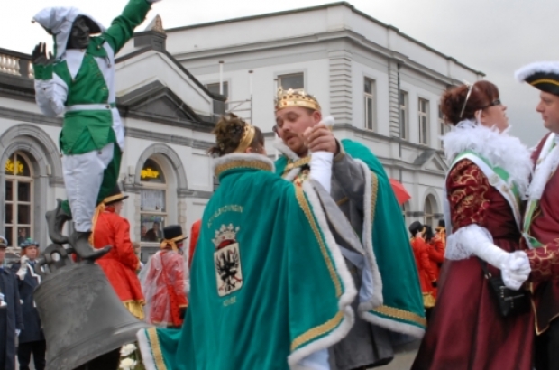 Early on 5 January, the elected carnival king and queen will head a small group of dignitaries through the town and call on the inhabitants to participate in the day’s festivities. After leaving from the Zotte Muur, a wall covered in caricatures, they lay flowers at the statue of the Ronsiese Zot or Ronse’s Fool – the symbol of the Bommelsfeesten (pictured). When the group arrives at the central square, the mayor hands them the key of the city, just as he does in Zottegem.