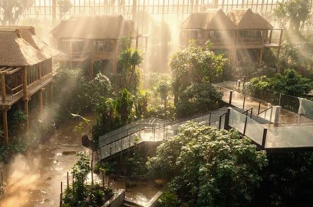 Edenya is described by the park as a new world inspired by lush landscapes, featuring themed environments, plants and species designed to offer visitors a sensory experience beyond normal zoo exhibits, under a 40,000m² tropical greenhouse.