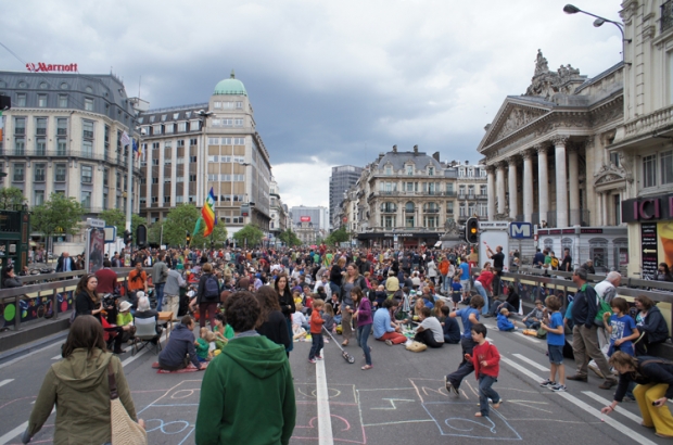 Pedestrians turned out in force on Sunday for the latest edition of Pic Nic the Streets, held in front of the Bourse/Beurs to protest against the city’s proposed plans to build a ‘mini-ring’ around the city centre. Following on from last year’s gathering, the Brussels municipal council announced plans to create pedestrianized streets around the Bourse/Beurs – a decision greeted by the citizens movement but not without reservations.