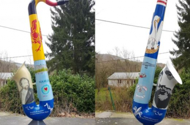 It required 60 hours of painting by Namur artist Dimitri Perpete, and the saxophone gift features the emblems of Namur, Dinant, Wallonia and New Orleans and a picture of Adolphe Sax, the instrument's inventor.