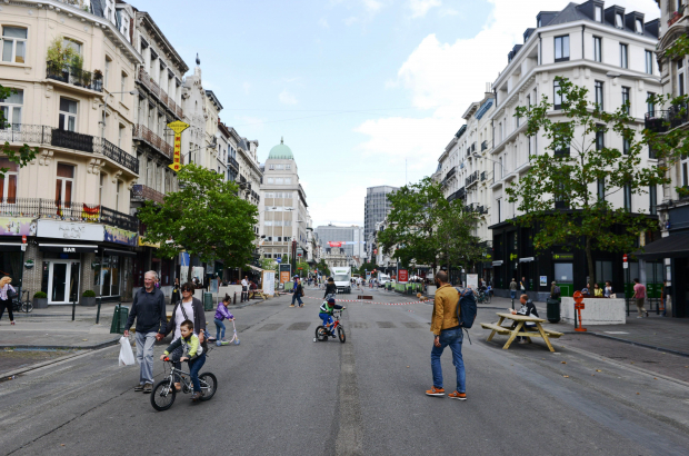 The central avenues in Brussels have now been closed to traffic for just over two years. While barriers stop traffic and some street furniture has been placed, the basic infrastructure remains as it was when the road was open.